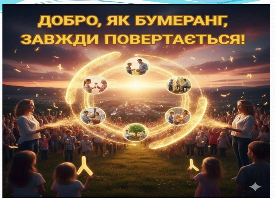 Головна мета акції «Бумеранг добра», проведеної практичним психологом Ольгою Капоріною з нагоди Всесвітнього дня доброти (13 листопада), полягала у формуванні та поглибленні ціннісних орієнтацій здобувачів освіти на доброту, емпатію та активну моральну позицію, а також у демонстрації причинно-наслідкового зв’язку добрих вчинків.
