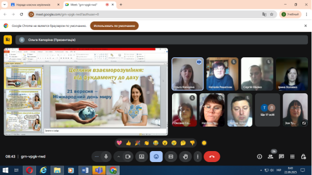 22 вересня 2025 року практичний психолог Ольга Капоріна провела для педагогів ранкову зустріч на тему «Цеглини взаєморозуміння: від фундаменту до даху». Її метою було надати викладачам практичні інструменти для покращення взаємодії та створення гармонійного середовища в освітньому процесі.
