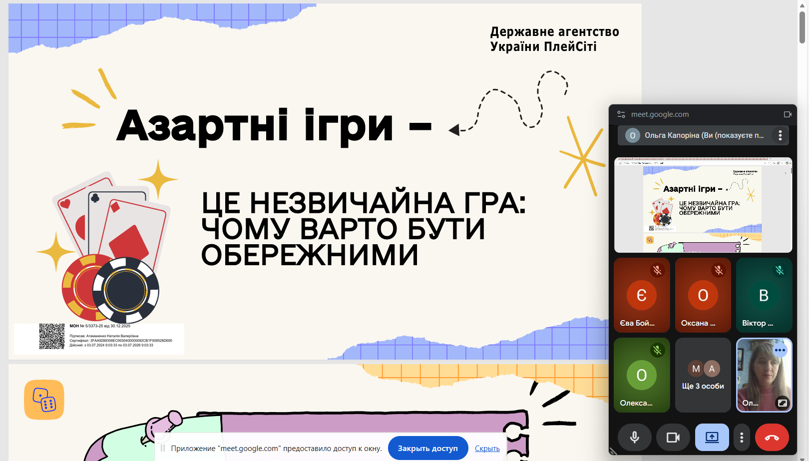Під час заходу було детально розкрито поняття азартних ігор та їх ключову відмінність від звичайних розваг — обов’язкову наявність грошової ставки.
