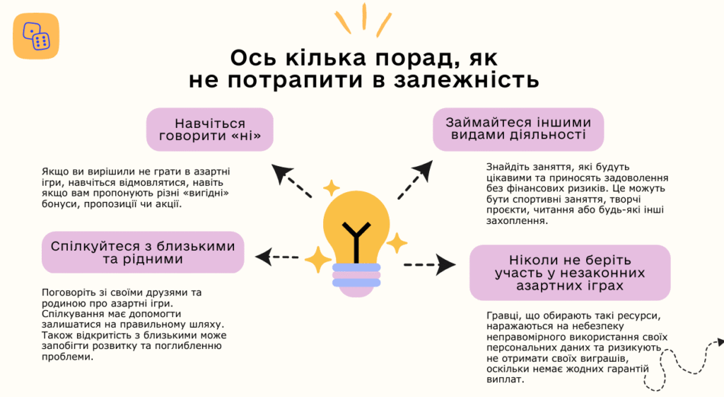 Практичний психолог акцентувала увагу на ризиках втрати контролю, що може призвести до психічного розладу – лудоманії.