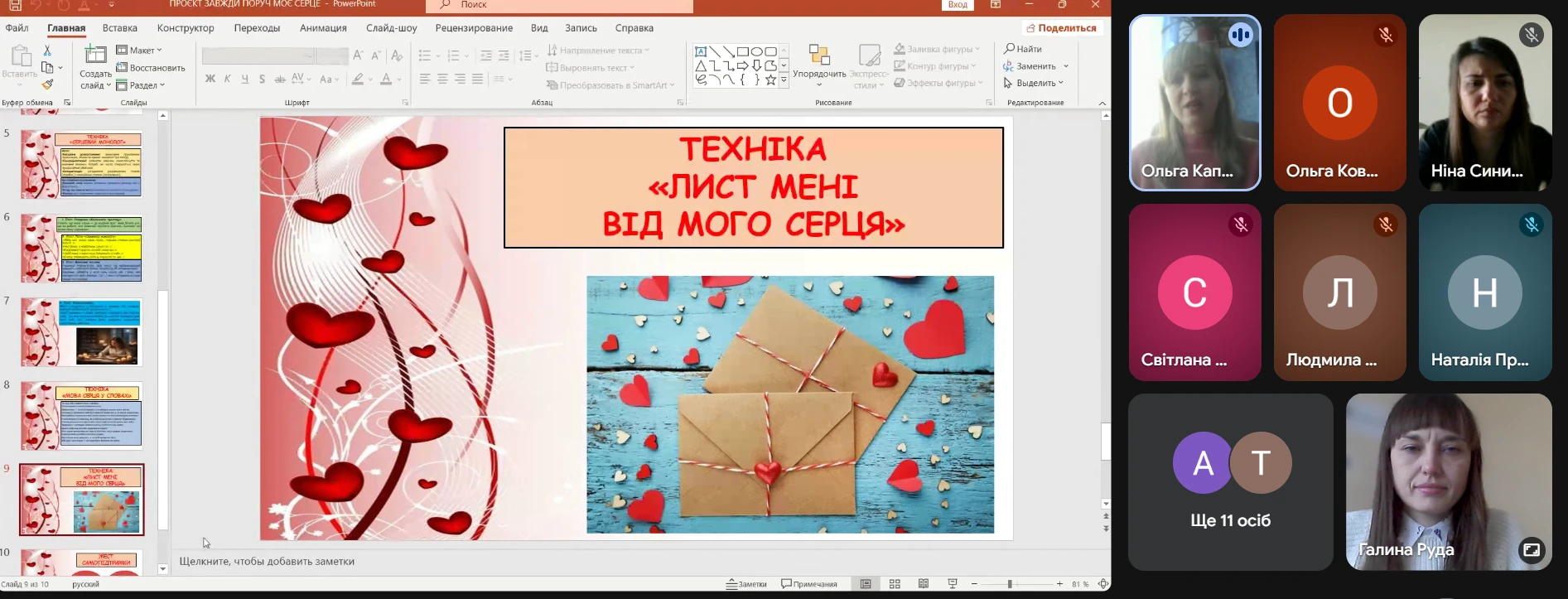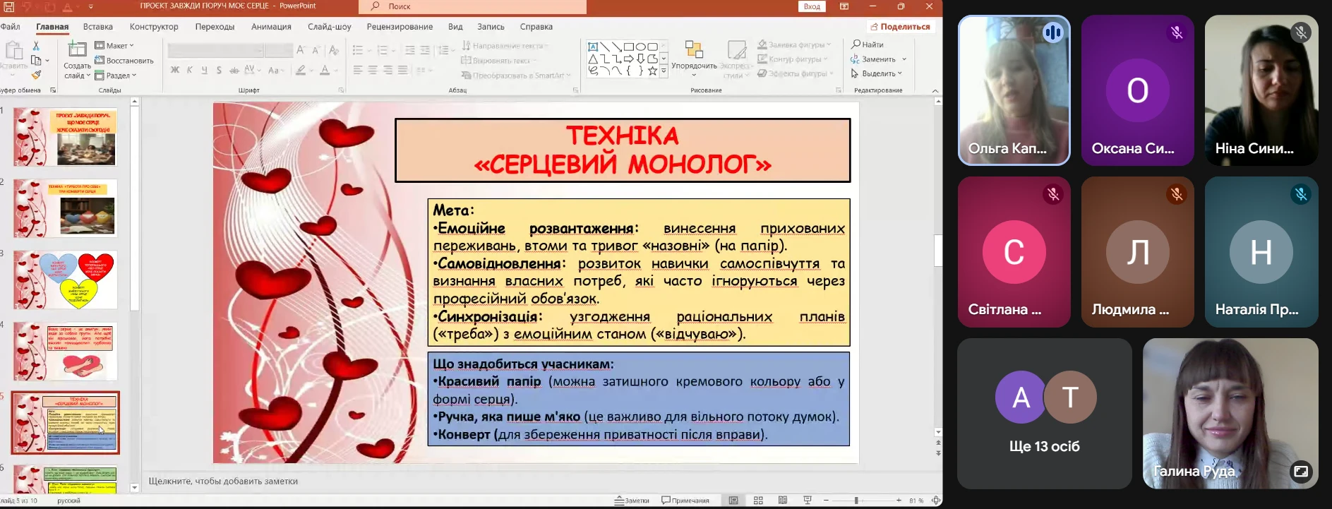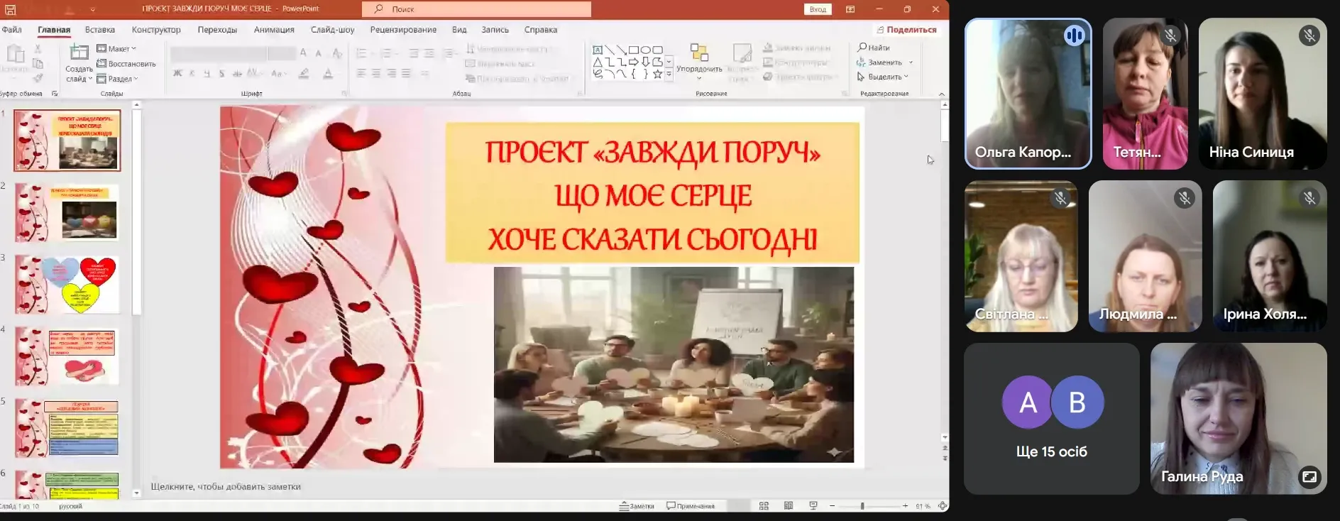 У рамках проєкту «Завжди поруч» 9.02.2026 року практичний психолог Ольга Капоріна на черговій ранковій зустрічі з викладачами провела захід, спрямований на психологічну підтримку та самовідновлення педагогів під назвою «Що моє серце хоче сказати сьогодні».