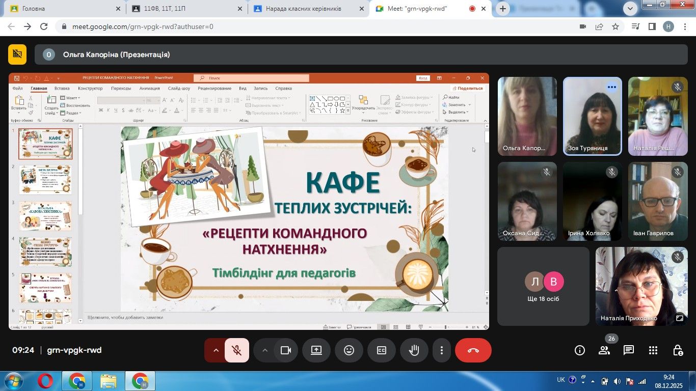 08 грудня 2025 року практичним психологом Ольгою Капоріною в рамках проєкту «Завжди поруч» була проведена ранкова зустріч з педагогами «Кафе теплих зустрічей: рецепти командного натхнення».