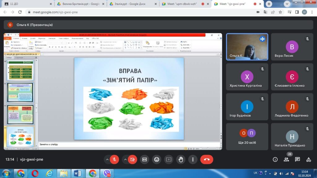 Запропонована вправа «Зім’ятий папір» навчила учасників акції, як попрацювати зі своїми неприємними емоціями, переживаннями, злістю, образами та гнівом; сприяла формуванню вміння не боятися говорити про проблему та вміти толерантно відноситись до оточуючих.