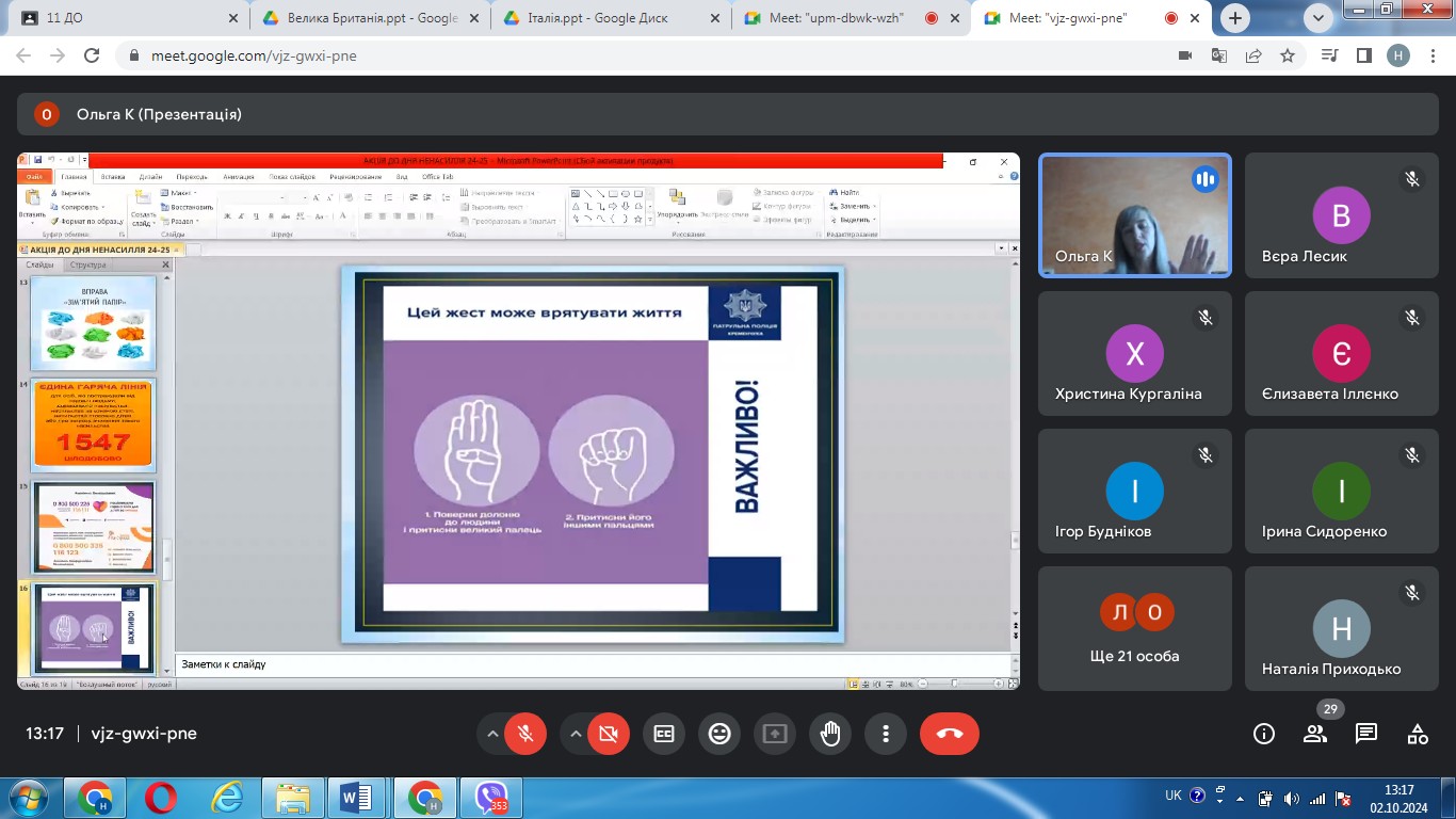 В ході заходу практичний психолог провела інформаційну бесіду з учасниками акції щодо того, як не стати жертвою насильницьких дій, як зупинити насилля проти себе чи інших, куди звертатися за допомогою, як розвинути в себе емпатію та надала рекомендації щодо мирного вирішення конфліктів.