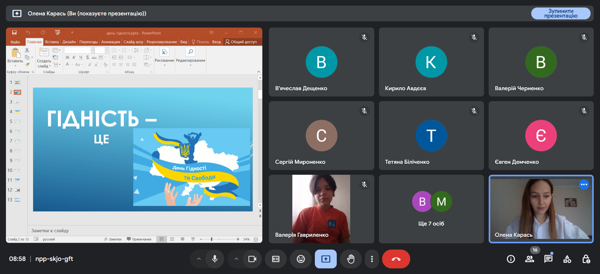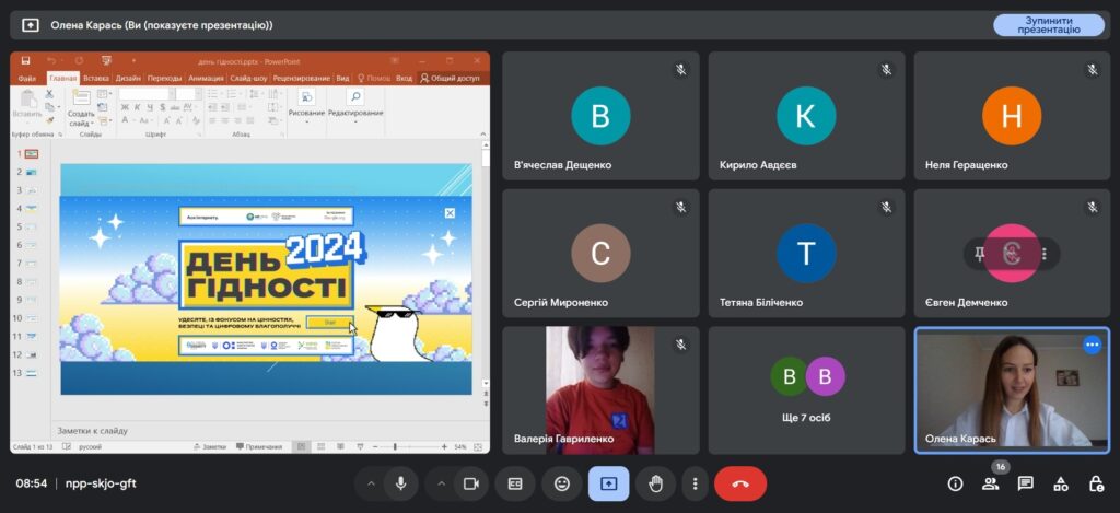 Під час заходу здобувачі фахової передвищої освіти разом з викладачем обговорили значення гідності в їхньому житті й житті інших людей; вчилися висловлювати свої думки про те, яку роль відіграє гідність у їхньому житті; дізналися, як, поважаючи інших людей, можна здобути повагу до себе; спланували, що їм варто зробити протягом наступного року для підвищення почуття власної гідності й поваги до інших людей; хвилиною мовчання віддали шану тим, хто повернулися з війни на щиті, та тим, хто досі захищає українські кордони.