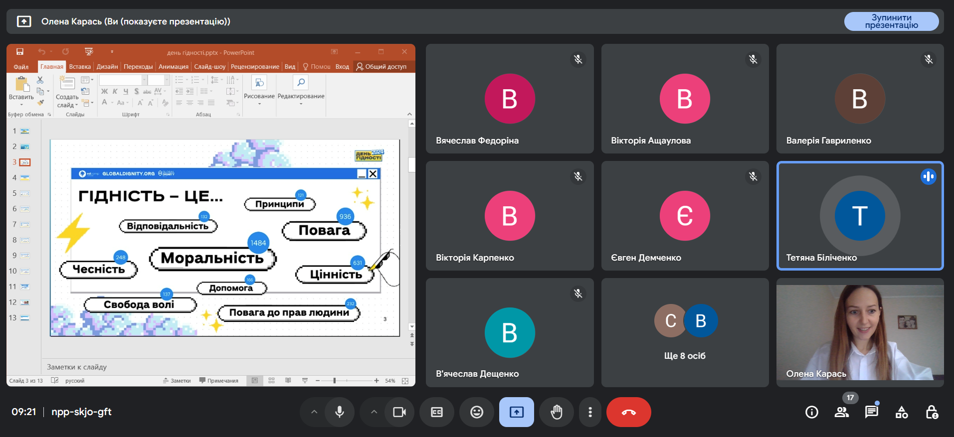Олена Карась ознайомила всіх присутніх з принципами Гідності:
