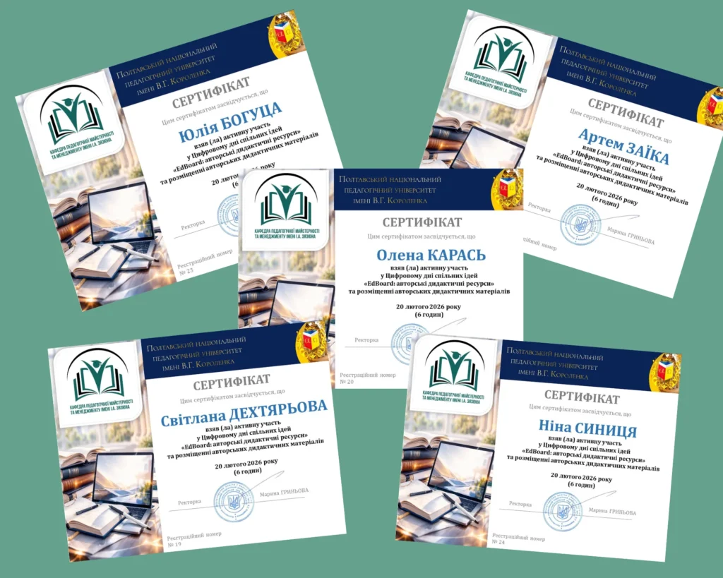 20 лютого 2026 року викладачі коледжу активно долучилися до ініціативи Цифрового дня спільних ідей, організованого кафедрою педагогічної майстерності та менеджменту імені І.А. Зязюна Полтавського національного педагогічного університету імені В.Г. Короленка.