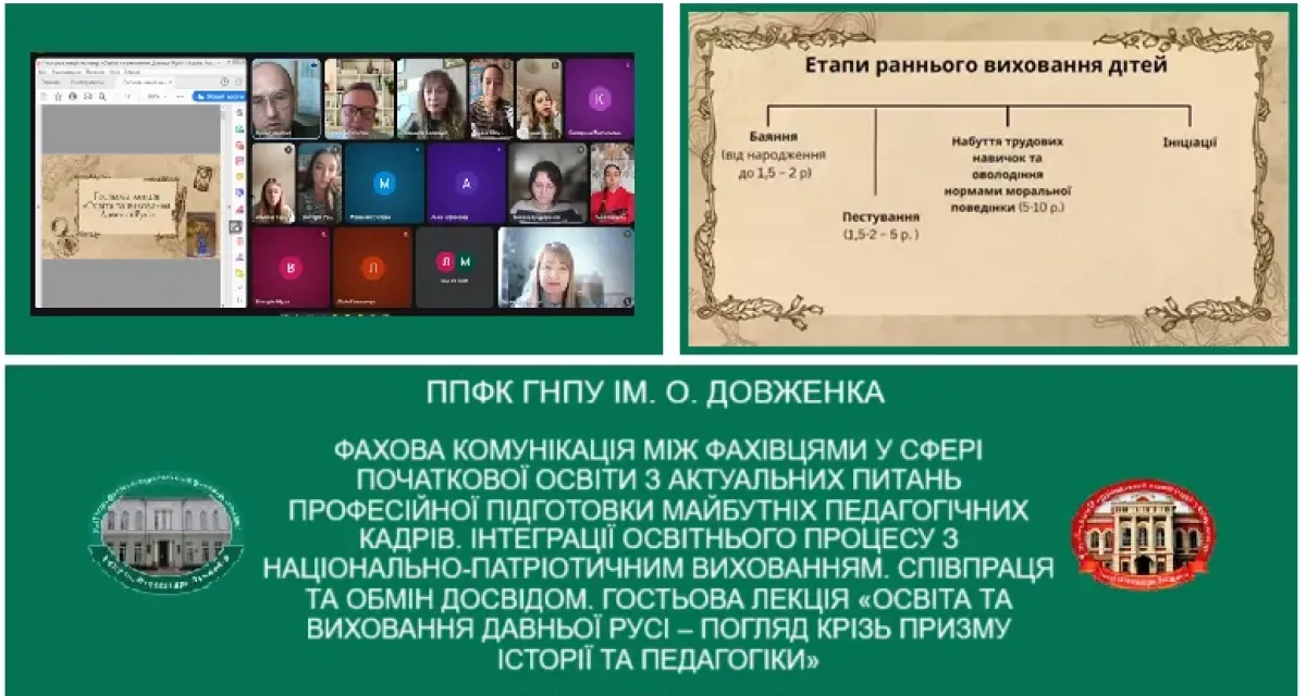 ФАХОВА КОМУНІКАЦІЯ МІЖ ФАХІВЦЯМИ У СФЕРІ ПОЧАТКОВОЇ ОСВІТИ З АКТУАЛЬНИХ ПИТАНЬ ПРОФЕСІЙНОЇ ПІДГОТОВКИ МАЙБУТНІХ ПЕДАГОГІЧНИХ КАДРІВ. ІНТЕГРАЦІЇ ОСВІТНЬОГО ПРОЦЕСУ З НАЦІОНАЛЬНО-ПАТРІОТИЧНИМ ВИХОВАННЯМ. СПІВПРАЦЯ ТА ОБМІН ДОСВІДОМ. ГОСТЬОВА ЛЕКЦІЯ «ОСВІТА ТА ВИХОВАННЯ ДАВНЬОЇ РУСІ – ПОГЛЯД КРІЗЬ ПРИЗМУ ІСТОРІЇ ТА ПЕДАГОГІКИ»
