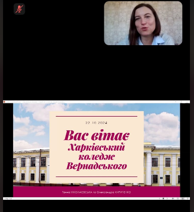 Ганна Ніколаєвська ознайомила присутніх зі структурою та організацією освітнього процесу в Харківському державному професійно-педагогічному фаховому коледжі імені В.І. Вернадського, звернула увагу на його особливості у дистанційному форматі; із актуальністю та потребами ринку праці у майстрах виробничого навчання для закладів професійної (професійно-технічної) освіти в наш час.
