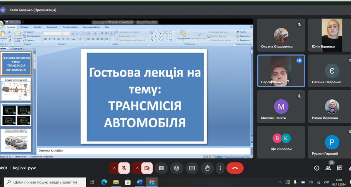 ГОСТЬОВА ЛЕКЦІЯ «ТРАНСМІСІЯ АВТОМОБІЛІВ»