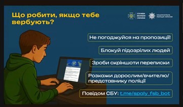У відеоматеріалі представники СБУ та ювенальної поліції надали практичні поради щодо безпечної поведінки в цифровому середовищі, а також роз’яснили типові способи онлайн-вербування, на які можуть потрапити підлітки.