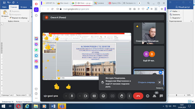 24 вересня 2024 року в онлайн-форматі пройшла Конференції студентів Відокремленого структурного підрозділу «Професійно-педагогічний фаховий коледж Глухівського національного педагогічного університету імені Олександра Довженка», де були представники від усіх груп. Гостями на Конференції студентів булу заступник директора з НР Іван Гаврилов та заступник директора з НВР Зоя Туряниця.