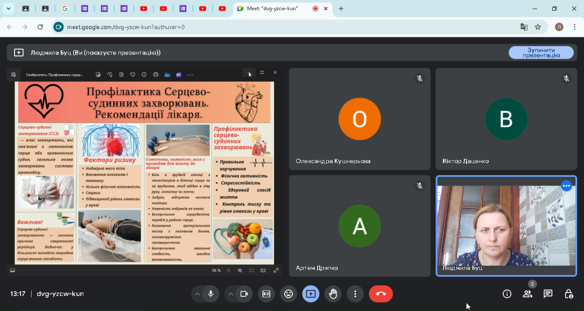 01 жовтня 2024 року у рамках роботи лекторію «Здоров‘я» та наркопосту коледжу викладач Людмила Буц презентувала здобувачам освіти санбюлетень «Профілактика серцево-судинних захворювань. Рекомендації лікаря» з нагоди Всесвітнього дня серця (27 вересня).