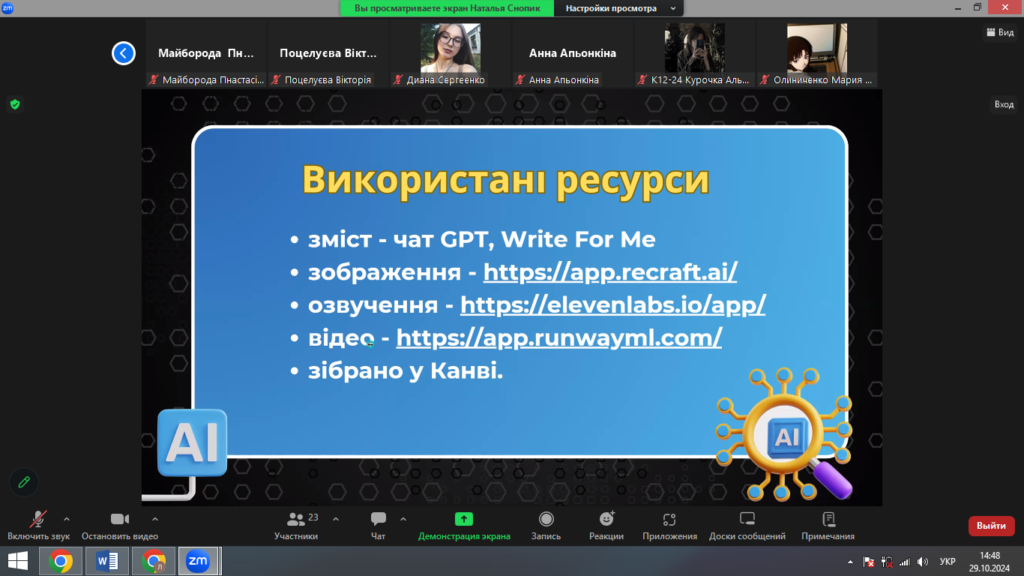 МАЙСТЕРКЛАС «ВИКОРИСТАННЯ ШІ ТЕХНОЛОГІЙ»