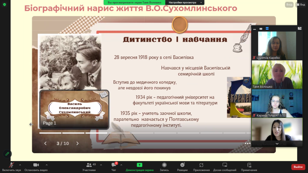 Переглянуті сторінки усного журналу розширили знання студентів про видатного українського педагога В.О. Сухомлинського.