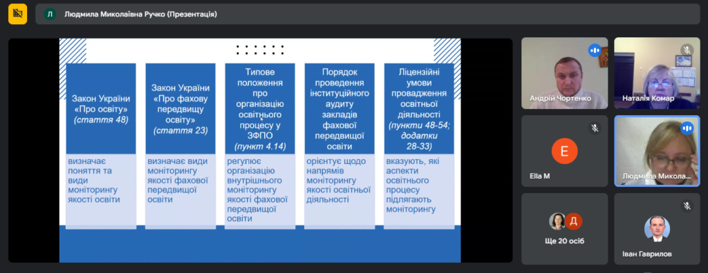 Принципами та підходами до проведення моніторингу якості освітнього процесу поділилася Людмила Ручко, заступник директора з навчальної роботи ВСП «Роменський фаховий коледж Київського національного економічного університету імені Вадима Гетьмана».