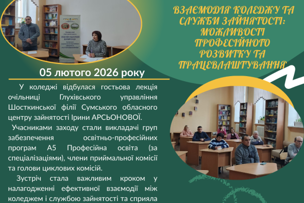 ВЗАЄМОДІЯ КОЛЕДЖУ ТА СЛУЖБИ ЗАЙНЯТОСТІ: МОЖЛИВОСТІ ПРОФЕСІЙНОГО РОЗВИТКУ ТА ПРАЦЕВЛАШТУВАННЯ