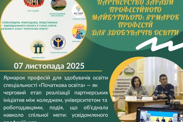 ПАРТНЕРСТВО ЗАРАДИ ПРОФЕСІЙНОГО МАЙБУТНЬОГО: ЯРМАРОК ПРОФЕСІЙ ДЛЯ ЗДОБУВАЧІВ ОСВІТИ