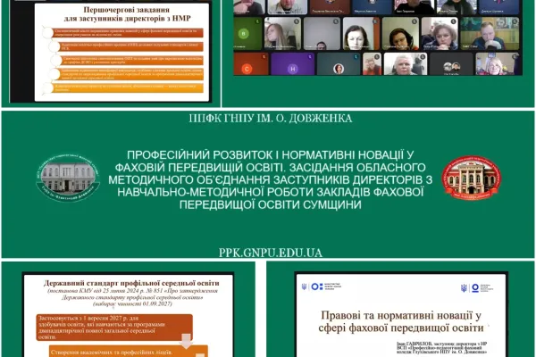 ПРОФЕСІЙНИЙ РОЗВИТОК І НОРМАТИВНІ НОВАЦІЇ У ФАХОВІЙ ПЕРЕДВИЩІЙ ОСВІТІ. ЗАСІДАННЯ ОБЛАСНОГО МЕТОДИЧНОГО ОБ’ЄДНАННЯ ЗАСТУПНИКІВ ДИРЕКТОРІВ З НАВЧАЛЬНО-МЕТОДИЧНОЇ РОБОТИ ЗАКЛАДІВ ФАХОВОЇ ПЕРЕДВИЩОЇ ОСВІТИ СУМЩИНИ