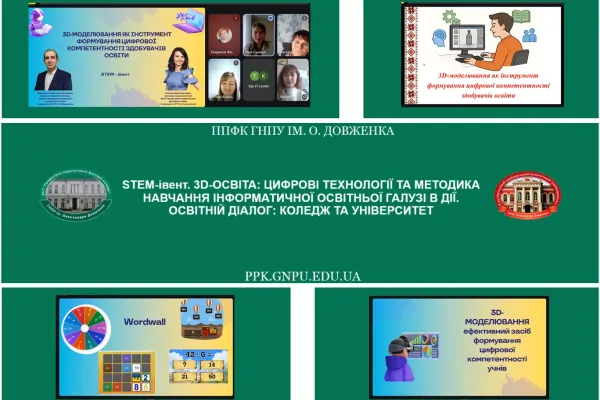 STEM-івент. 3D-ОСВІТА: ЦИФРОВІ ТЕХНОЛОГІЇ ТА МЕТОДИКА НАВЧАННЯ ІНФОРМАТИЧНОЇ ОСВІТНЬОЇ ГАЛУЗІ В ДІЇ. ОСВІТНІЙ ДІАЛОГ: КОЛЕДЖ ТА УНІВЕРСИТЕТ