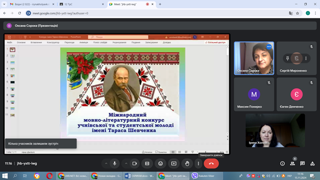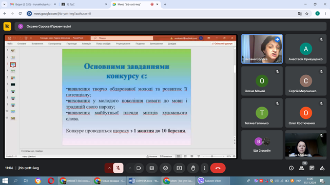 15 листопада 2024 року у ВСП «Професійно-педагогічний фаховий коледж Глухівського НПУ ім. О. Довженка» відбулося відкриття першого етапу ХV Міжнародного мовно-літературного конкурсу учнівської та студентської молоді імені Тараса Шевченка. Цей конкурс щороку об’єднує нас навколо визначної постаті національної культури, пророка та Великого Кобзаря. Викладачі української мови та літератури Оксана Сорока та Ірина Холявко в онлайновому режимі провели відкриття конкурсу, у якому візьмуть участь здобувачі освіти першого та другого курсів.