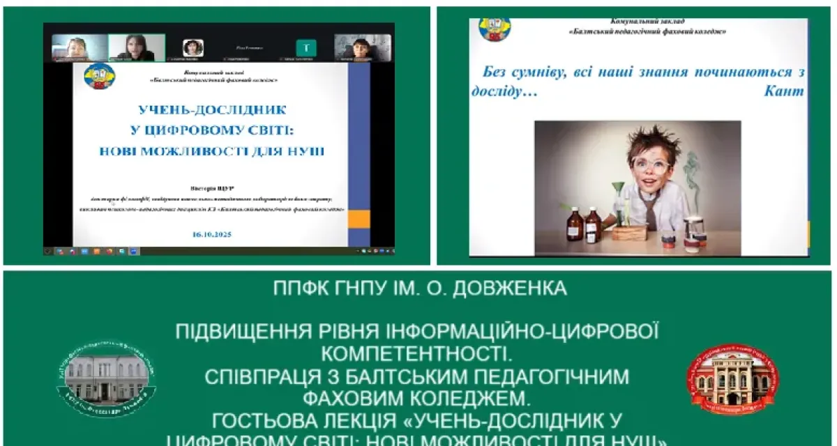 ПІДВИЩЕННЯ РІВНЯ ІНФОРМАЦІЙНО-ЦИФРОВОЇ КОМПЕТЕНТНОСТІ. СПІВПРАЦЯ З БАЛТСЬКИМ ПЕДАГОГІЧНИМ ФАХОВИМ КОЛЕДЖЕМ. ГОСТЬОВА ЛЕКЦІЯ «УЧЕНЬ-ДОСЛІДНИК У ЦИФРОВОМУ СВІТІ: НОВІ МОЖЛИВОСТІ ДЛЯ НУШ»