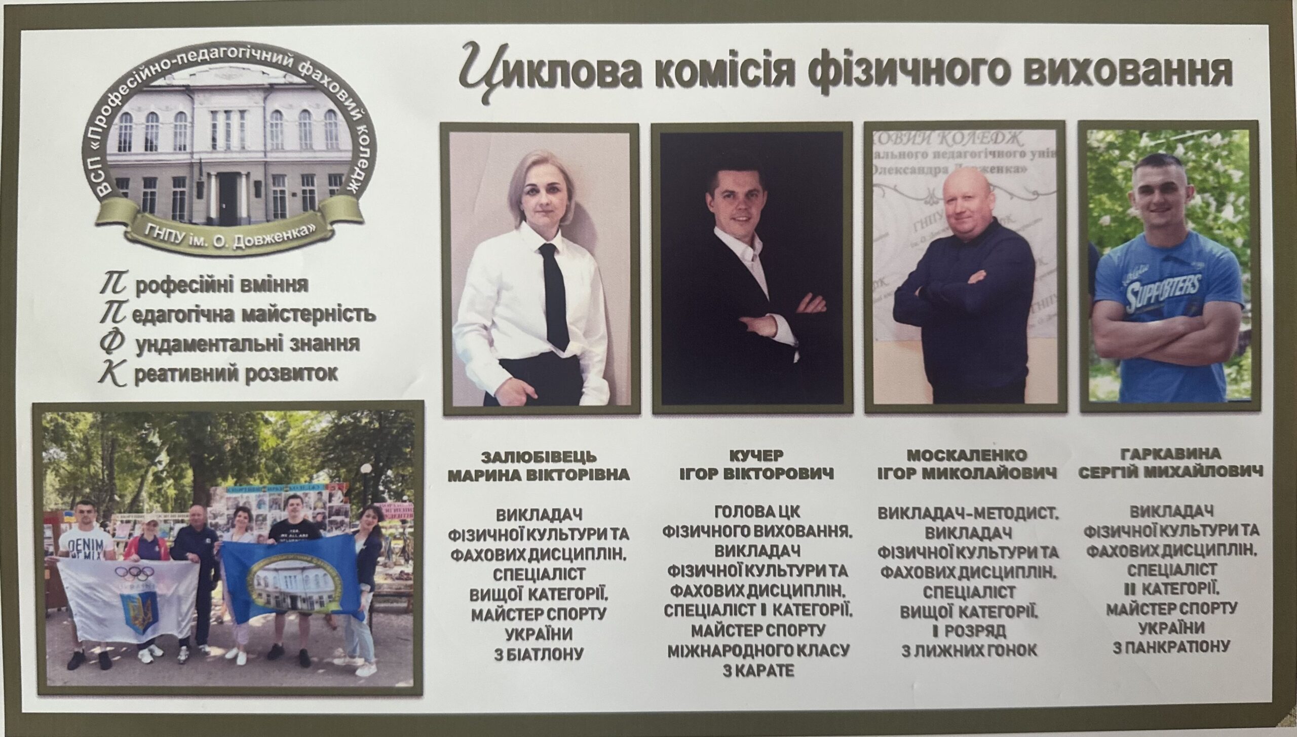 На виконання даних вимог до діяльності закладу ФПО, 12 лютого 2025 року викладачі циклової комісії фізичного виховання: Кучер І.В., Залюбівець М.В., Москаленко І.М., Губатенко О.М. взяли участь у семінарі «Інноваційні та нетрадиційні форми організації та проведення занять з фізичного виховання в закладах фахової передвищої освіти». Захід було організовано Науково-методичним центром вищої та фахової передвищої освіти спільно з Комітетом з фізичного виховання і спорту Міністерства освіти і науки України.