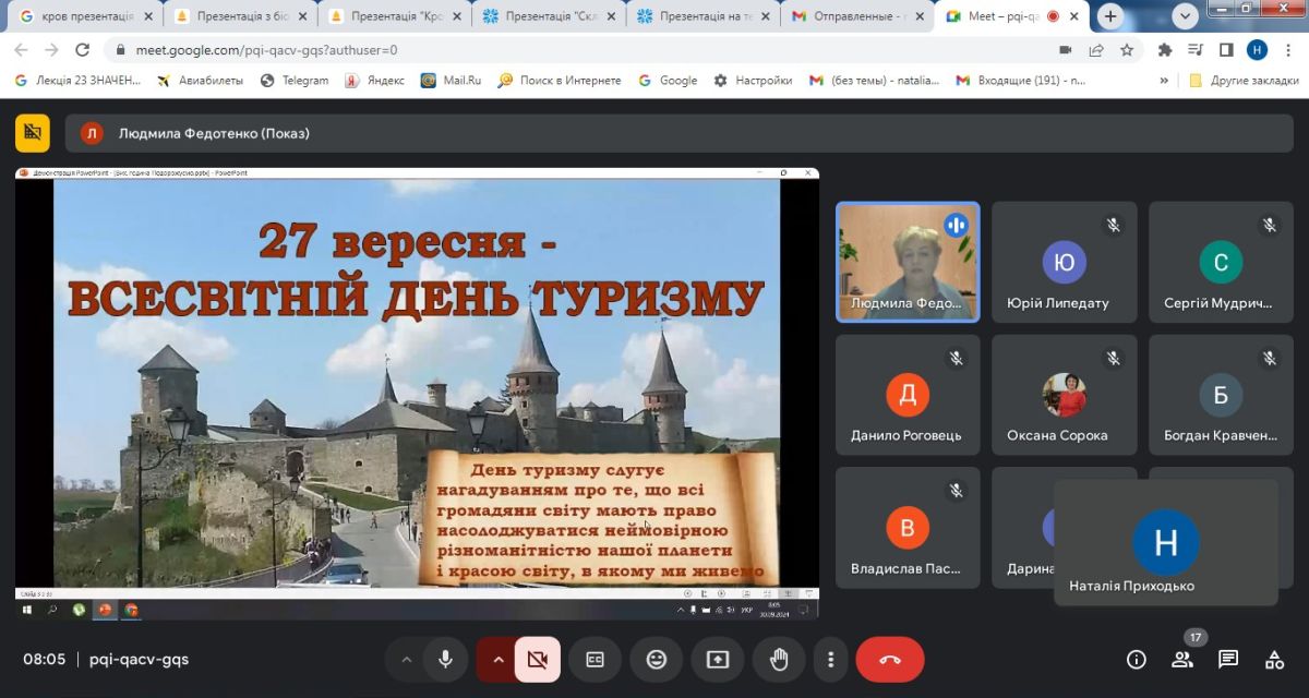 30 вересня 2024 року викладач Людмила Федотенко провела виховний захід «Подорож країнами Європи», присвячений Міжнародному дню туризму (27 вересня), під час якого ознайомила студентів коледжу з різними видами туризму.