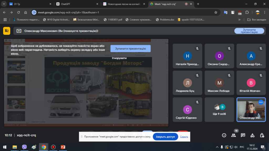 17 грудня 2024 р. викладачем ЦК професійної освіти Олександром Максимовичем було проведено для здобувачів освіти спеціальності 015 Професійна освіта спеціалізації 015.38 Професійна освіта (Транспорт) професійний дайджест про розвиток автомобільної галузі України «Живи і працюй в Україні.