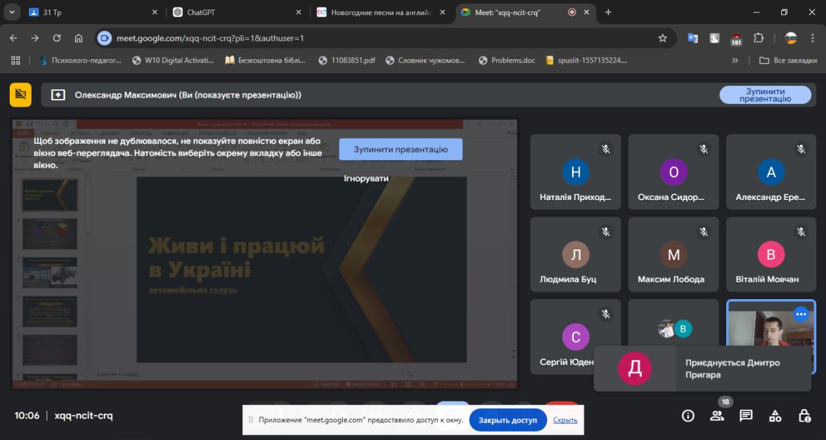 17 грудня 2024 р. викладачем ЦК професійної освіти Олександром Максимовичем було проведено для здобувачів освіти спеціальності 015 Професійна освіта спеціалізації 015.38 Професійна освіта (Транспорт) професійний дайджест про розвиток автомобільної галузі України «Живи і працюй в Україні.