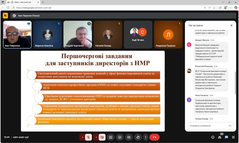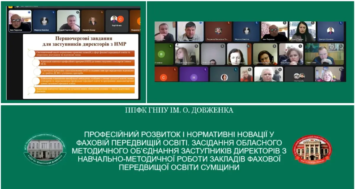 ПРОФЕСІЙНИЙ РОЗВИТОК І НОРМАТИВНІ НОВАЦІЇ У ФАХОВІЙ ПЕРЕДВИЩІЙ ОСВІТІ. ЗАСІДАННЯ ОБЛАСНОГО МЕТОДИЧНОГО ОБ’ЄДНАННЯ ЗАСТУПНИКІВ ДИРЕКТОРІВ З НАВЧАЛЬНО-МЕТОДИЧНОЇ РОБОТИ ЗАКЛАДІВ ФАХОВОЇ ПЕРЕДВИЩОЇ ОСВІТИ СУМЩИНИ