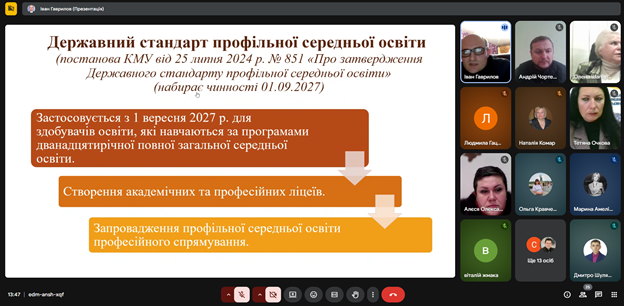 Під час засідання обговорювалися актуальні тенденції, проблеми та перспективи розвитку фахової передвищої освіти, питання організації освітнього процесу, моніторингу якості освіти та підвищення ефективності освітньо-професійних програм.
