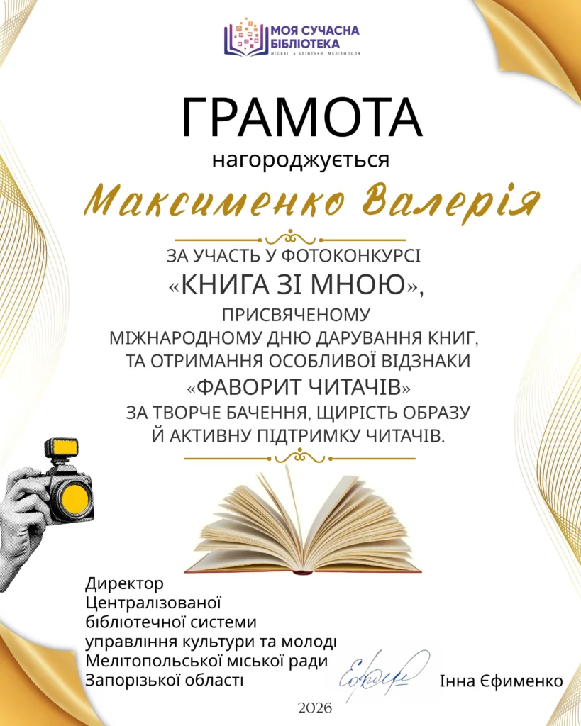 У межах фотоконкурсу «Книга зі мною», організованого Центральна міська бібліотека м. Мелітополь до Міжнародного дня дарування книг, світлина, представлена від нашого коледжу, здобула почесну відзнаку – «Фаворит читачів»!