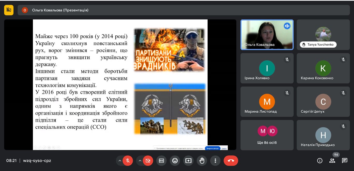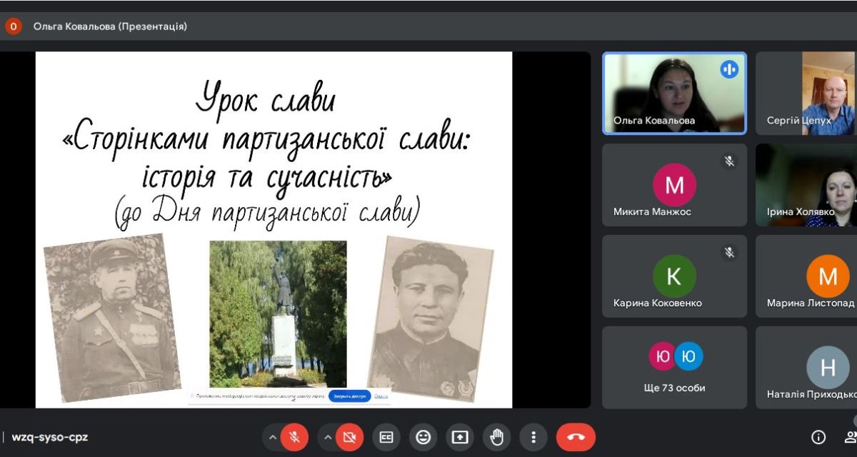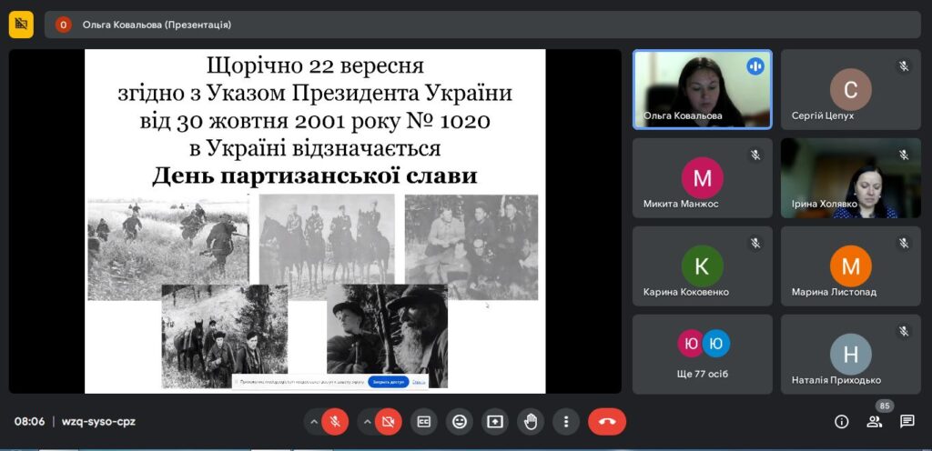 23 вересня 2024 р. викладачем коледжу Ольгою Ковальовою було проведено урок слави «Сторінками партизанської слави: історія та сучасність», присвячений Дню партизанської слави, що відповідно до Указу Президента України від 30 жовтня 2001 року №1020 відзначається в Україні щороку 22 вересня.