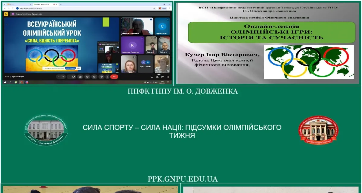 15 вересня 2025 року відбувся онлайн Олімпійський урок «Сила, єдність і перемога». Викладач фізичної культури Марина Залюбівець ознайомила учасників із видатними спортсменами коледжу, які прославили заклад своїми перемогами, а також вшанувала пам’ять «янголів спорту» Глухівської громади, які загинули у війні.