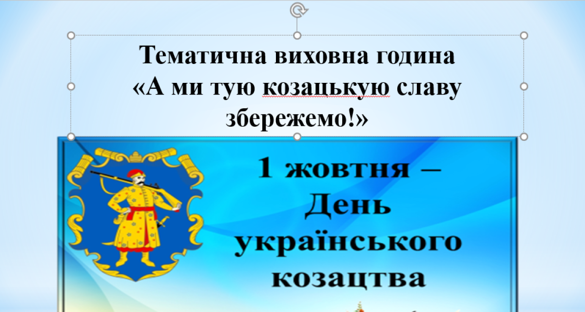 07 жовтня 2024 року викладач Ірина Скрипник провела тематичну виховну годину «А ми тую козацькую славу збережемо!», присвячену Дню українського козацтва, що відзначається в Україні 01 жовтня.