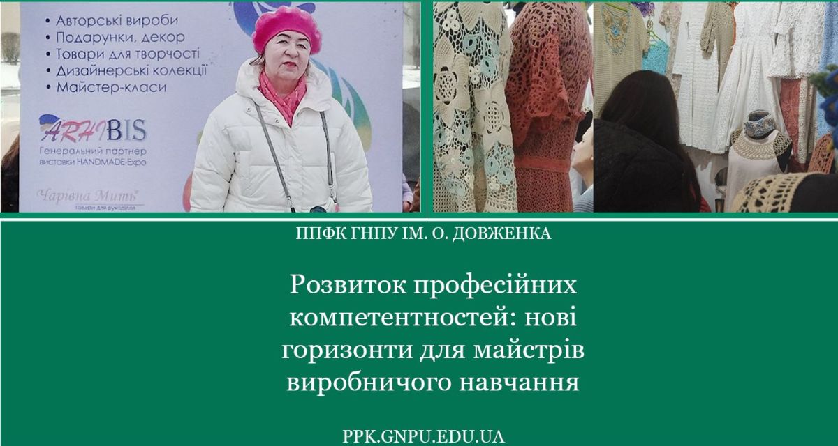 Викладачка фахових дисциплін Валентина Сєврюкова є не лише учасником творчих конкурсів та майстеркласів, а й постійним відвідувачем виставкового майданчика HANDMADE-Expo, який для неї став унікальним місцем для обміну досвідом, пошуку ідей для розширення горизонтів професійного вдосконалення, нових знайомств, корисних контактів.