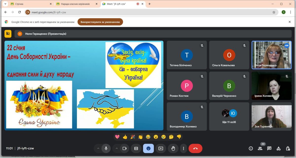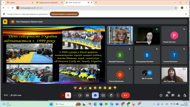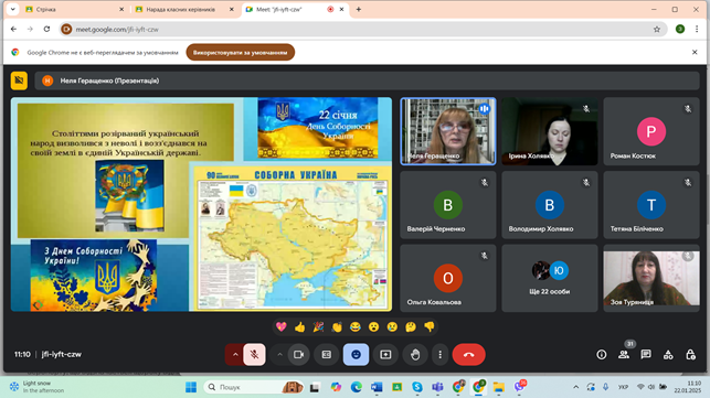 22 січня відзначається День Соборності України. З нагоди свята викладач Неля Геращенко провела для учасників освітнього процесу коледжу урок патріотизму «День Соборності України – єднання сили й духу народу».
