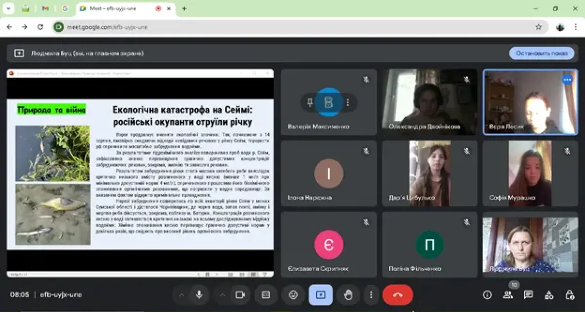 05 вересня 2024 р. викладач біології та екології коледжу Людмила Буц та студенти І курсу спеціальностей 012 Дошкільна освіта та 014.11 Середня освіта (Фізична культура) під час екохвилини «Вплив війни на біорізноманіття» обговорили проблему впливу війни на живу природу .