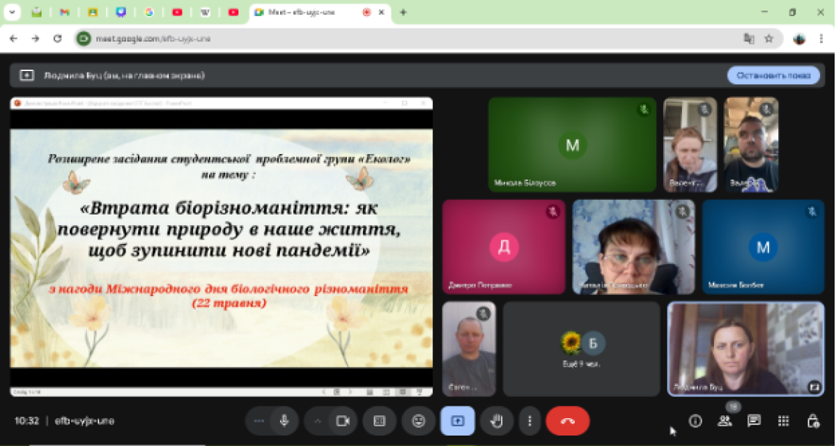 ВТРАТА БІОРІЗНОМАНІТТЯ: ЯК ЗБЕРЕГТИ ПРИРОДУ ЗАРАДИ МАЙБУТНЬОГО. РОЗШИРЕНЕ ЗАСІДАННЯ СТУДЕНТСЬКОЇ ПРОБЛЕМНОЇ ГРУПИ «ЕКОЛОГ»