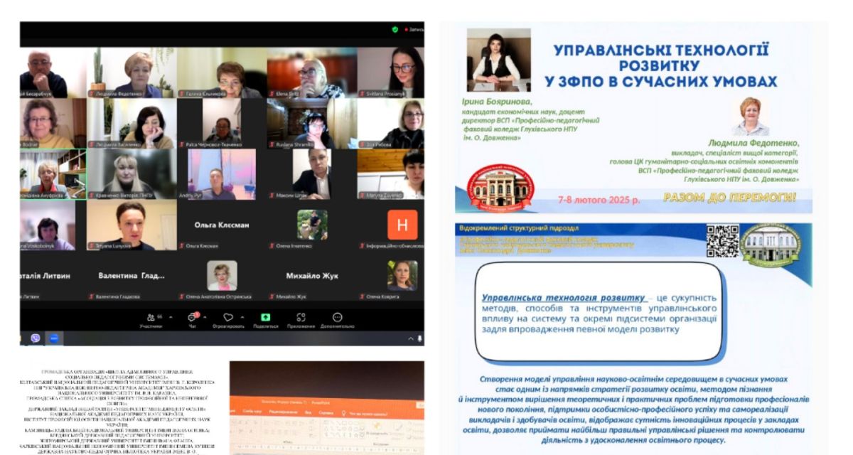 Учасникам наукового форуму представниками педагогічно-управлінської спільноти Коледжу було презентовано дієву модель управління освітнім середовищем ЗФПО на прикладі ВСП «Професійно-педагогічний фаховий коледж Глухівського НПУ ім. О. Довженка», що ґрунтується на інтегративності її складників та характеризується показниками досягнень учасників освітнього процесу.