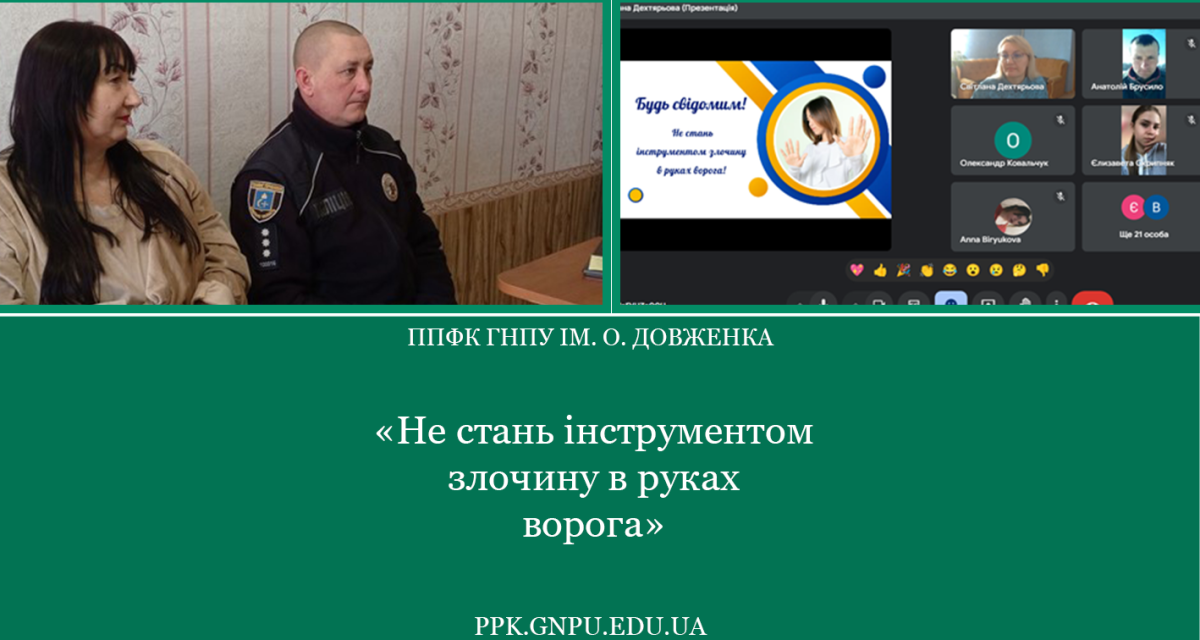 Під час заходу здобувачі освіти ознайомилися з методами вербування, які застосовуються російськими спецслужбами, а також із правовими наслідками участі у протиправних діях. Особливий акцент було зроблено на
