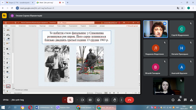 «Є люди, яким судилося бути більшими за самих себе. Такий Василь Симоненко». Ці слова Івана Дзюби лейтмотивом звучали на черговій зустрічі в літературній вітальні, що відбулася 08 січня 2025 року, у день 90-річчя з дня народження одного з найяскравіших представників шістдесятництва поета Василя Симоненка. Викладачка української мови та літератури Оксана Сорока провела присутніх на заході крізь його життєву історію: дитинство, студентські роки, редакторська робота, перша збірка, знахідки в Биківні, побиття міліціонерами після конфлікту на вокзалі в Черкасах.