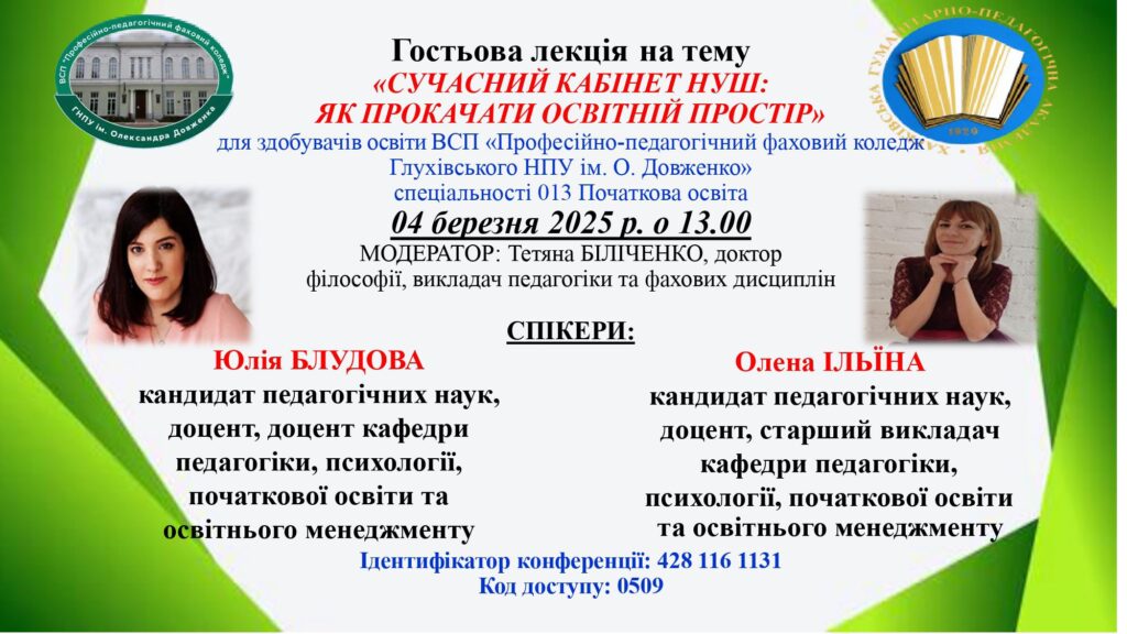 Гостьова лекція на тему «СУЧАСНИЙ КАБІНЕТ НУШ: ЯК ПРОКАЧАТИ ОСВІТНІЙ ПРОСТІР»