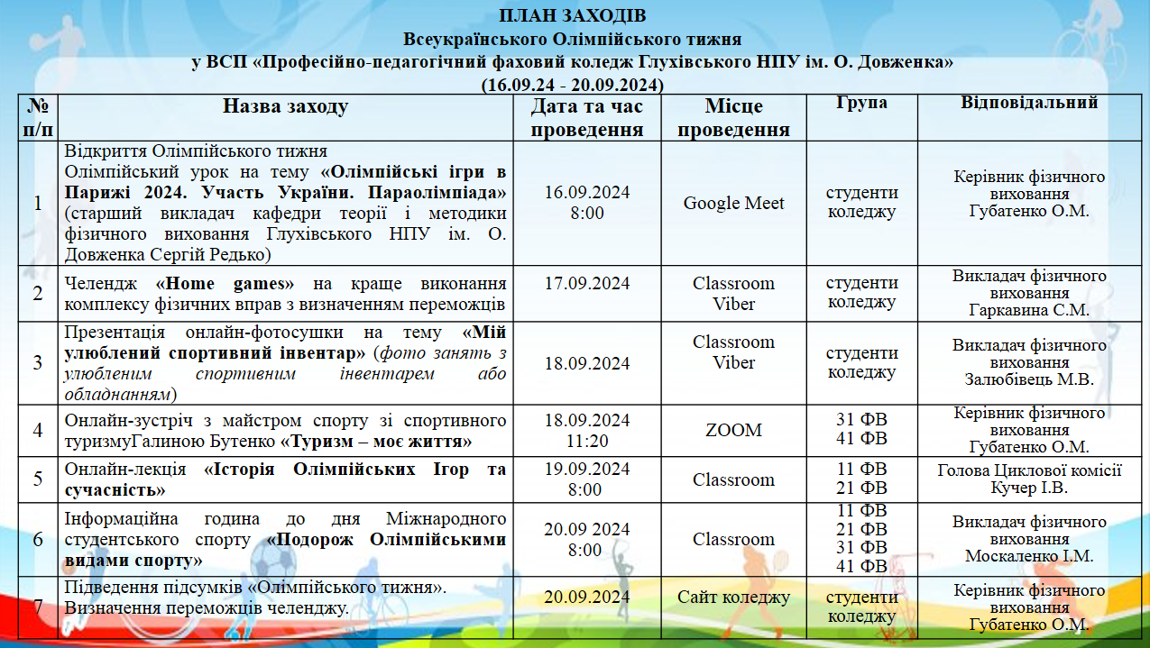 План Олімпійського тижня