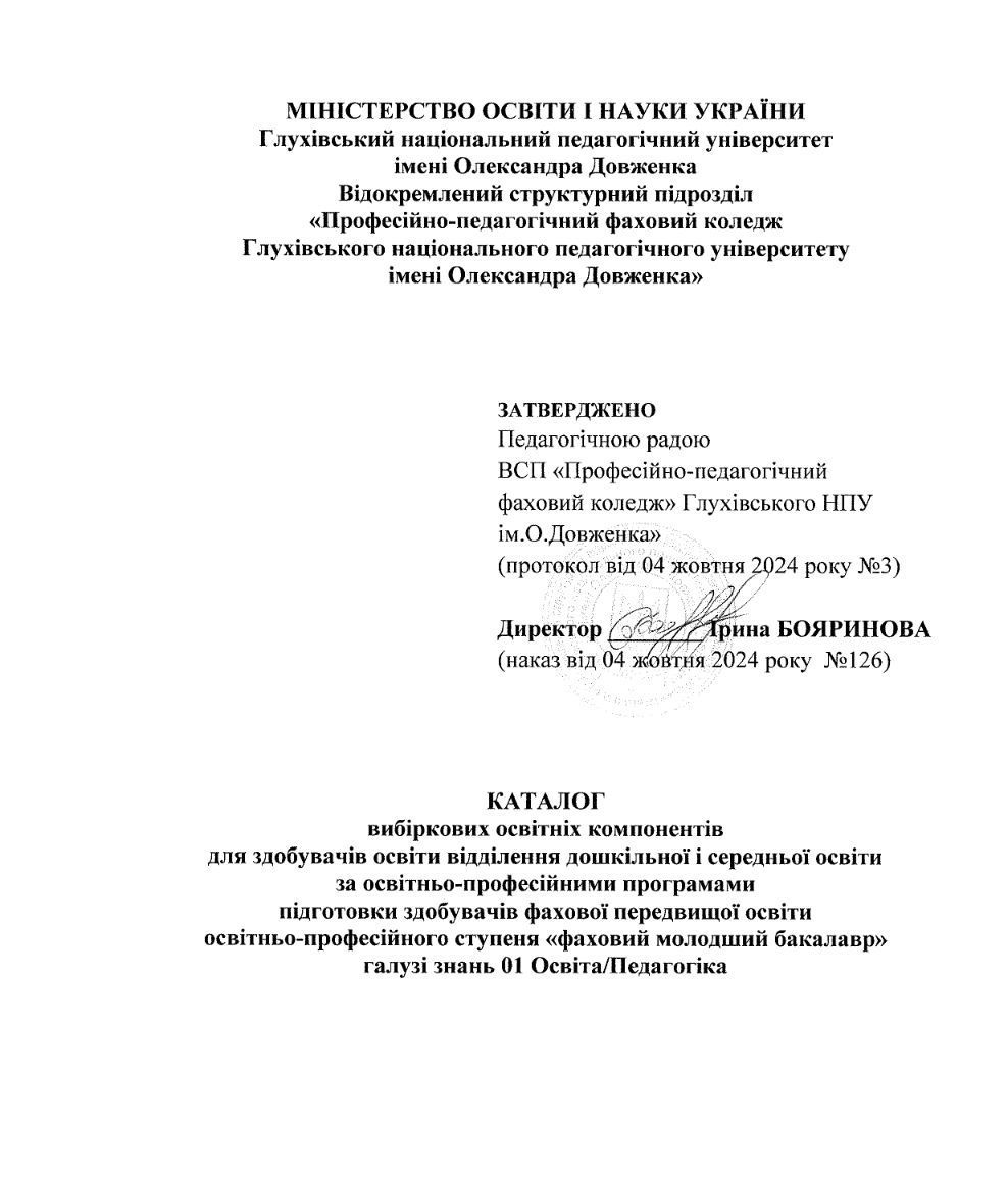 КАТАЛОГ вибіркових освітніх компонентів для здобувачів освіти відділення дошкільної і середньої освіти