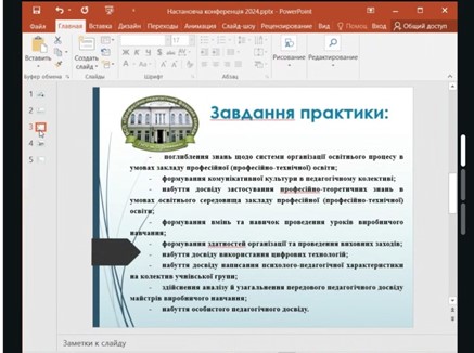 Під час конференції було розглянуто мету, завдання та зміст практики, обговорено вимоги до ведення звітної документації й організаційні питання. Окрему увагу приділили психолого-педагогічним аспектам професійної діяльності та ефективним методам роботи на робочому місці майстра виробничого навчання.