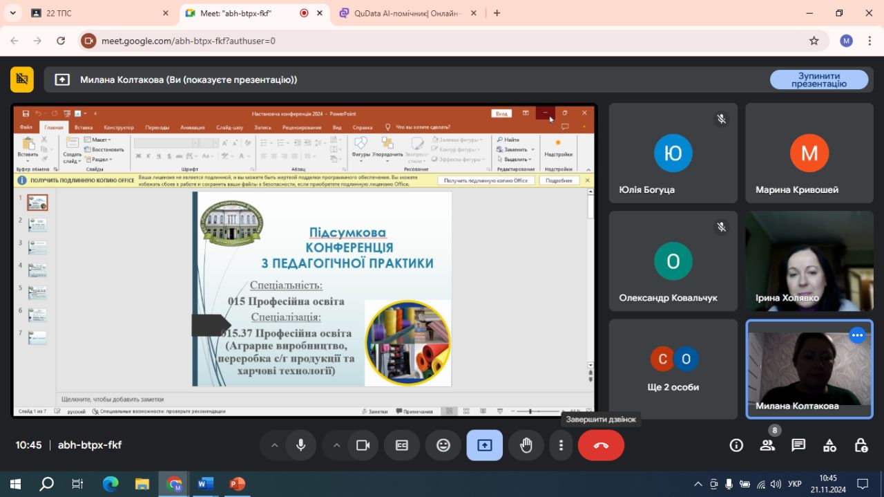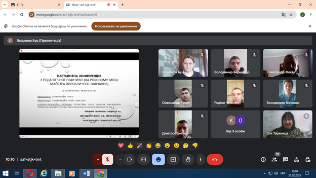 ПІДСУМКОВА КОНФЕРЕНЦІЯ З ПЕДАГОГІЧНОЇ ПРАКТИКИ (НА РОБОЧОМУ МІСЦІ МАЙСТРА ВИРОБНИЧОГО НАВЧАННЯ) ДЛЯ СТУДЕНТІВ 21ТЛС ТА 22ТЛС ГРУП